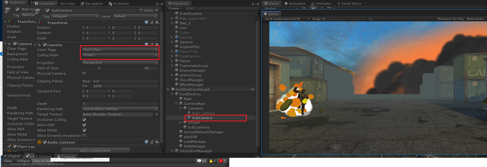 - 서브카메라 보면 플레이어 제외하고 모든 오브젝트를 보이는것이 확인이 된다.